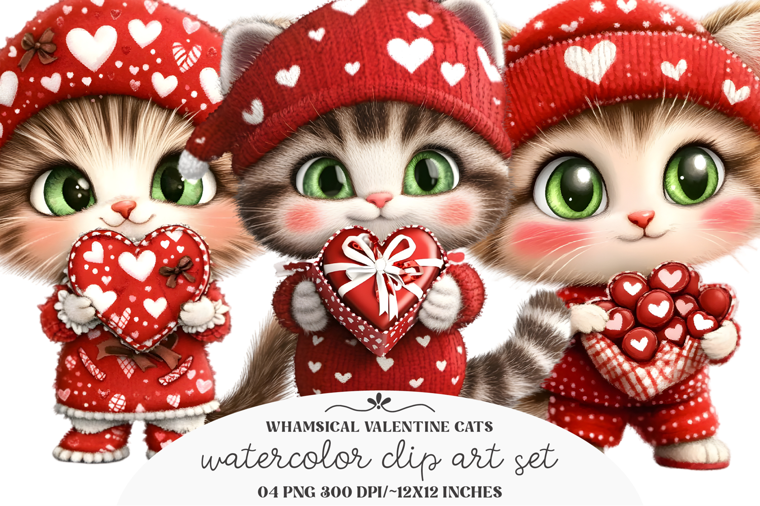 whamsical valentine cats clipart