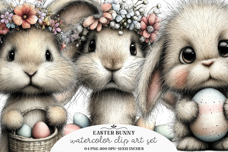 Bundle Sweet Whimsical Cute Easter Clipart Bunny Rabbit Adorable Charming