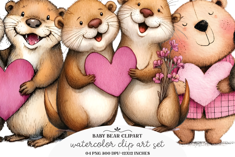 Valentine Animals Couple Clipart example image 1