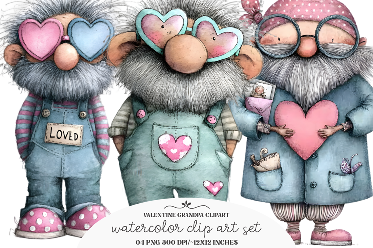 Watercolor Valentine Grandpa Clipart