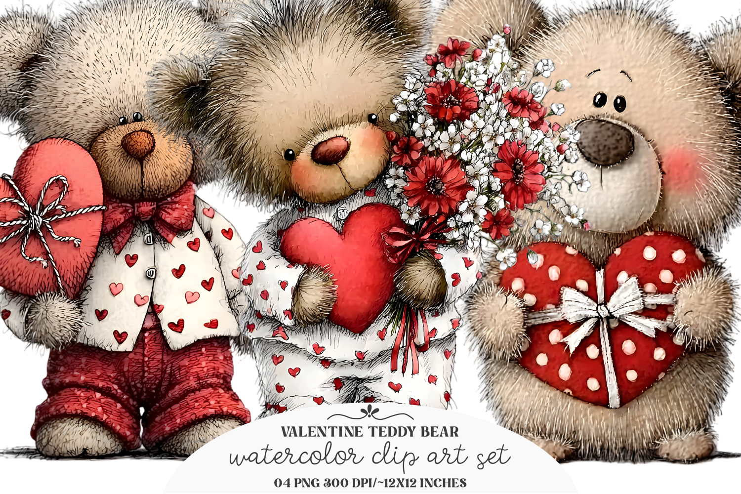 Similar Design Products to Whimsical Valentine Teddy Bear Clipart