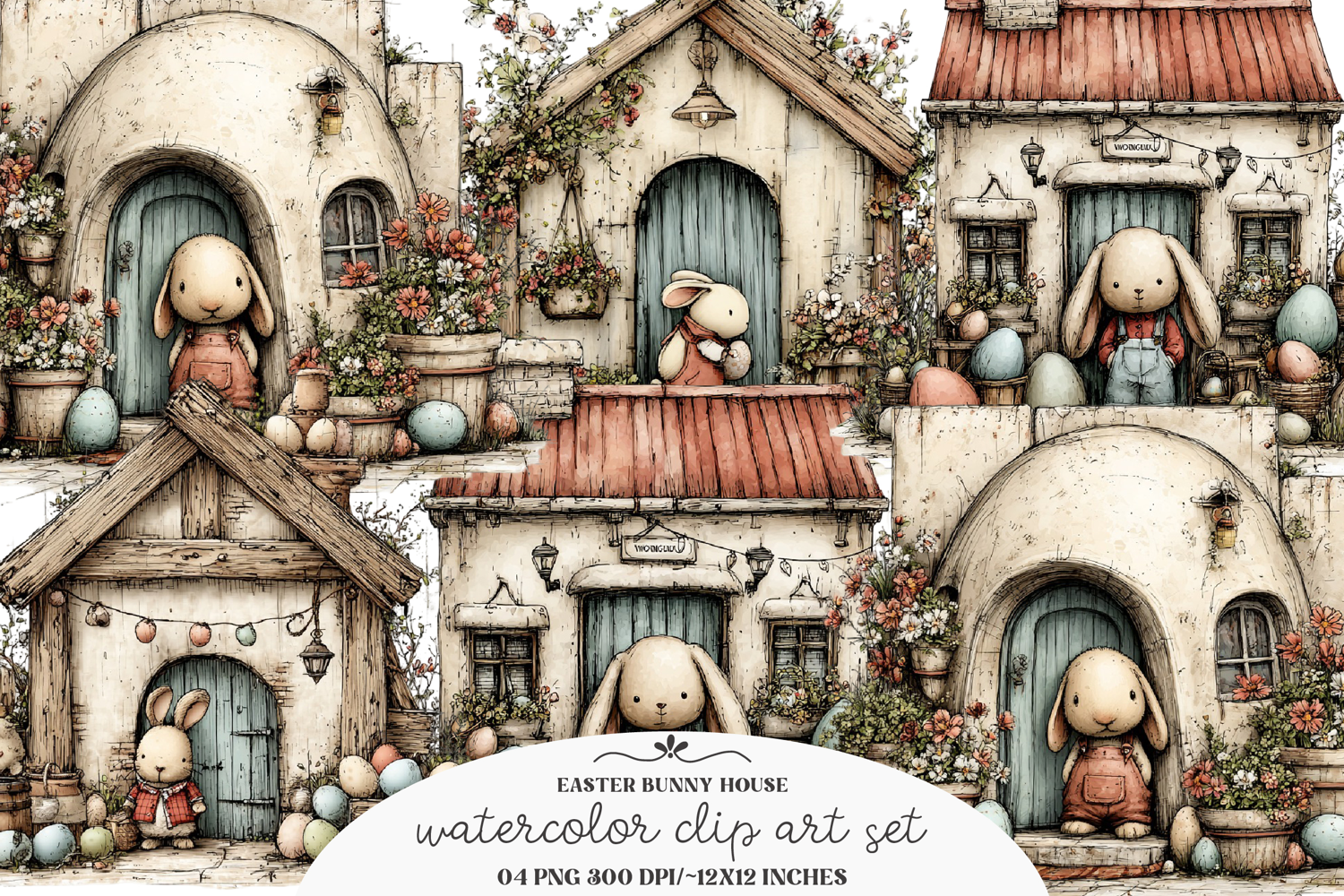 Spring Sweet Whimsical Cute Easter Bunny Rabbit House Adorable Charming