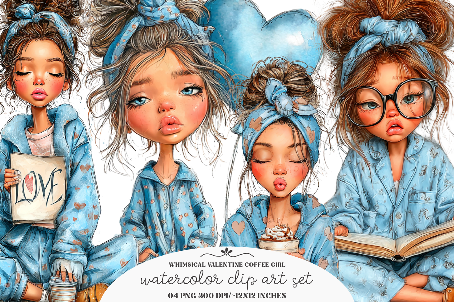 Similar Design Products to Whimsical valentine coffee girl clipart - valentine coffee