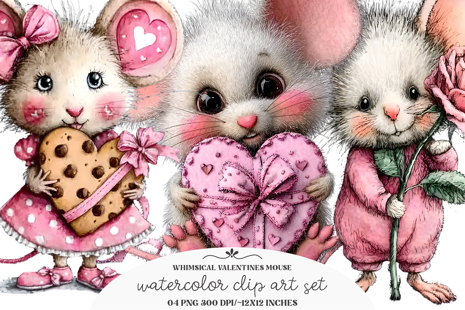 Similar Design Products to Whimsical Valentines Mouse Clipart