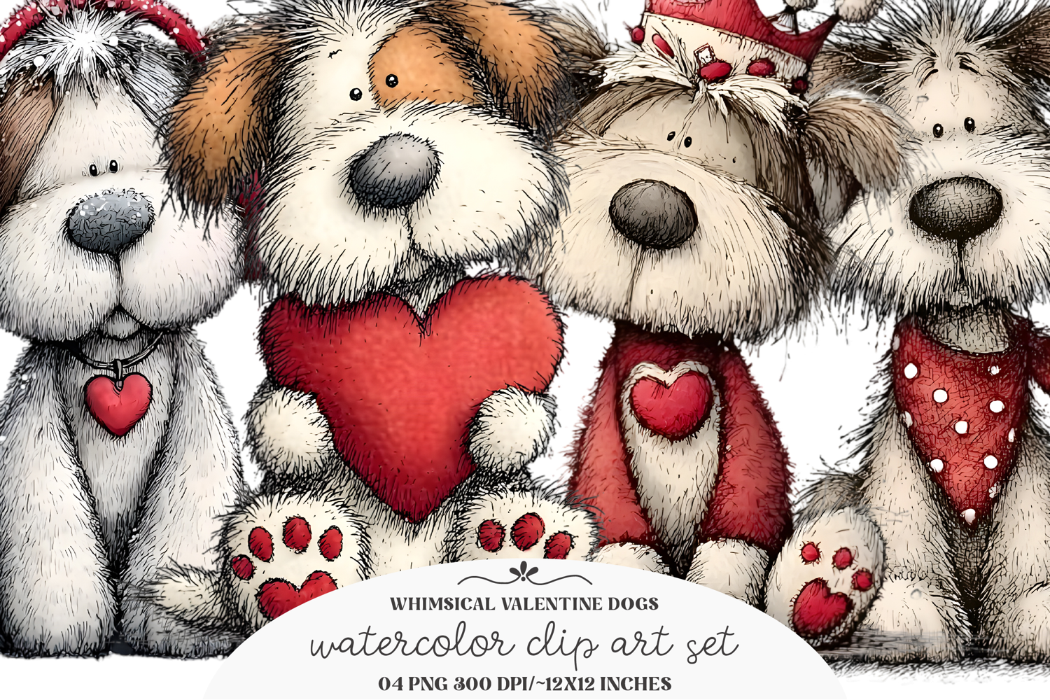 Similar Design Products to Whimsical Valentine Dogs Clipart