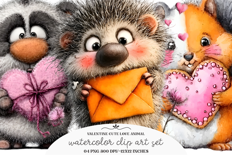Valentine Cute Love Animal Clipart example image 1