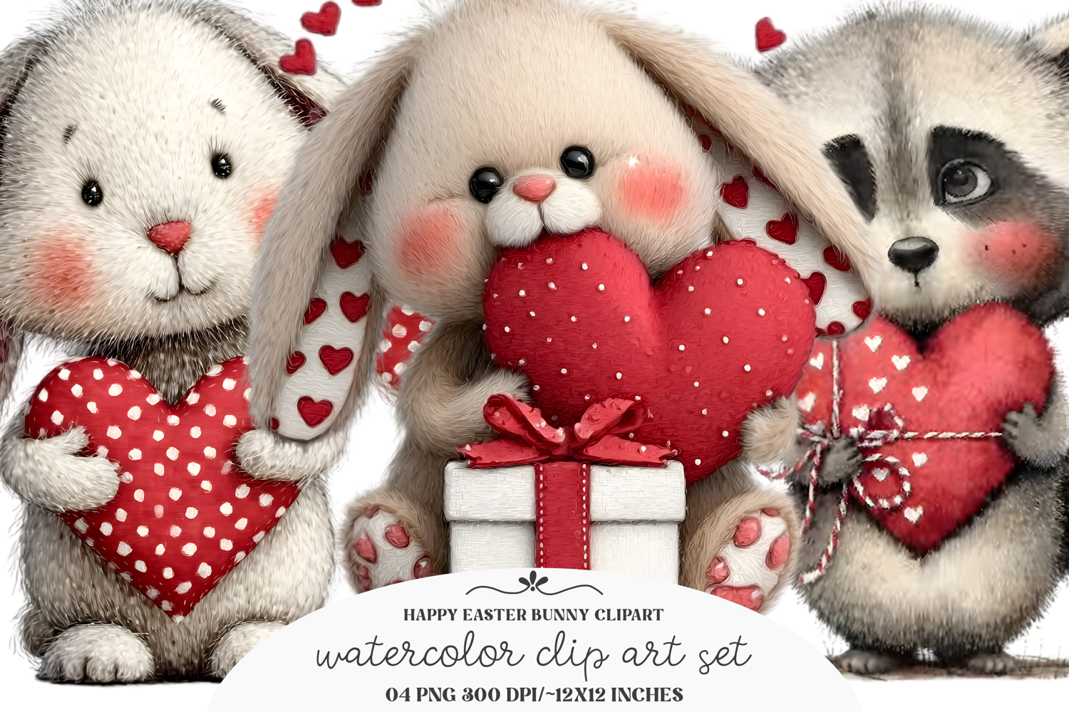 Similar Design Products to Watercolor Valentine Animals Clipart
