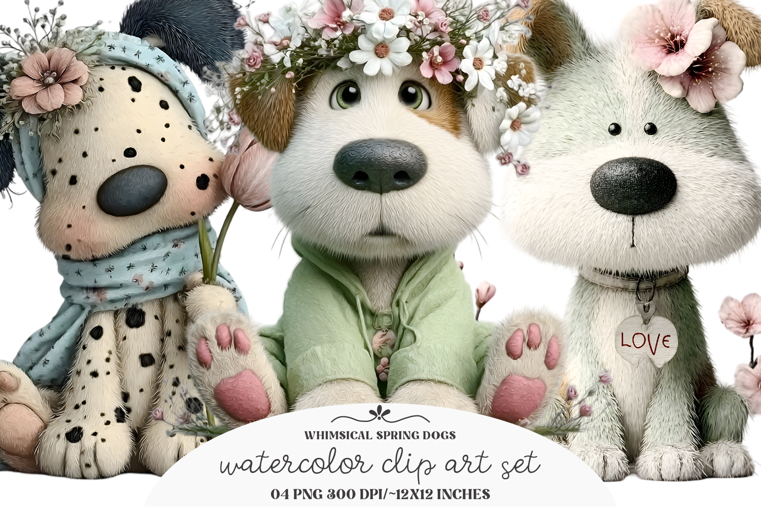 Dog Clipart Cute Dog Illustration Floral Dogs Spring Animal Clipart Dogs With Flowers Playful Dogs Whimsical Dog Art Spring Dogs Clipart Whimsical Spring Dogs Pastel Dogs