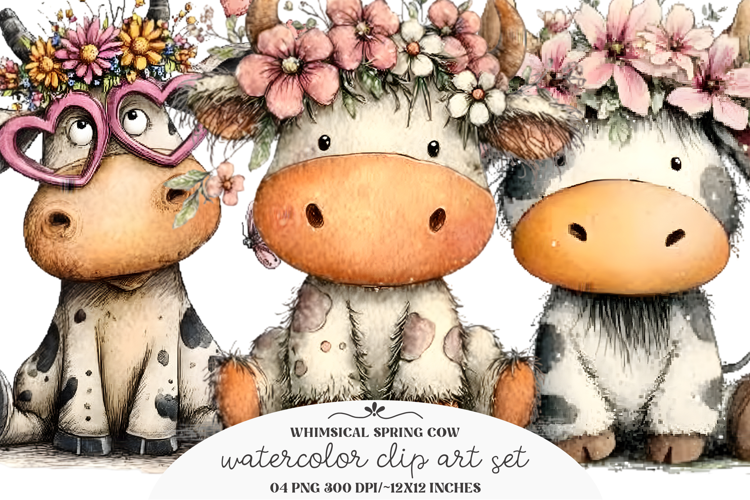 Floral Cow Cow Png Cow With Flowers Baby Cow Clipart Kawaii Cow Cute Cow Illustration Spring Cow Clipart Whimsical Spring Cow Spring Farm Animal Farm Spring Clipart