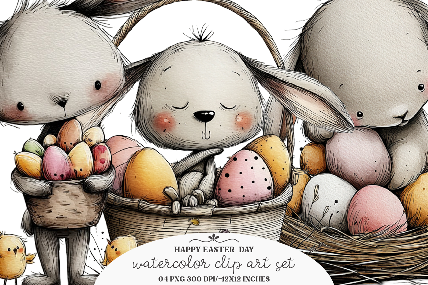 Spring Bundle Easter Eggs Clipart Bunny Rabbit Duckling Chick Lamb