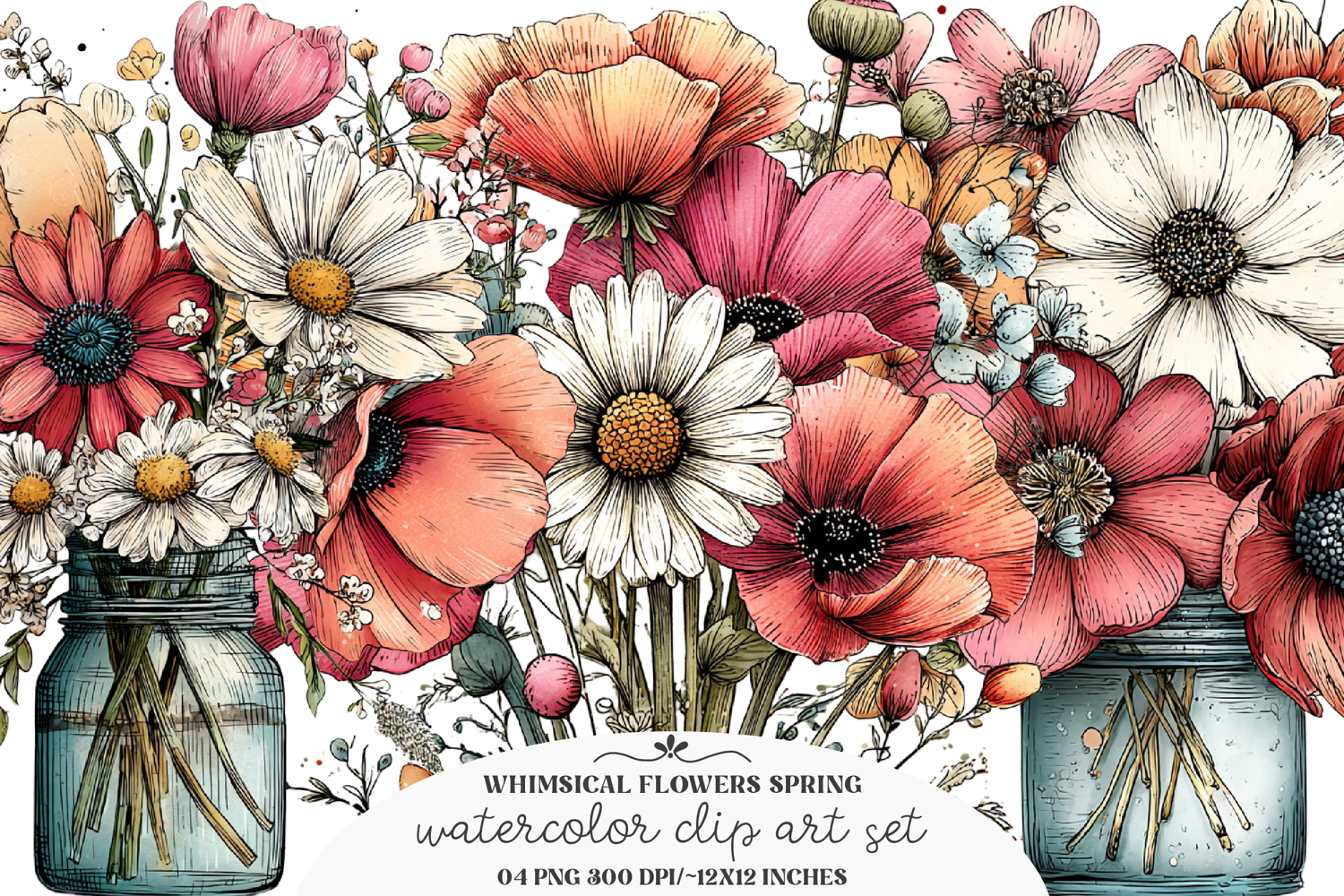 Whimsical flowers spring clipart - flowers spring Png example image 1
