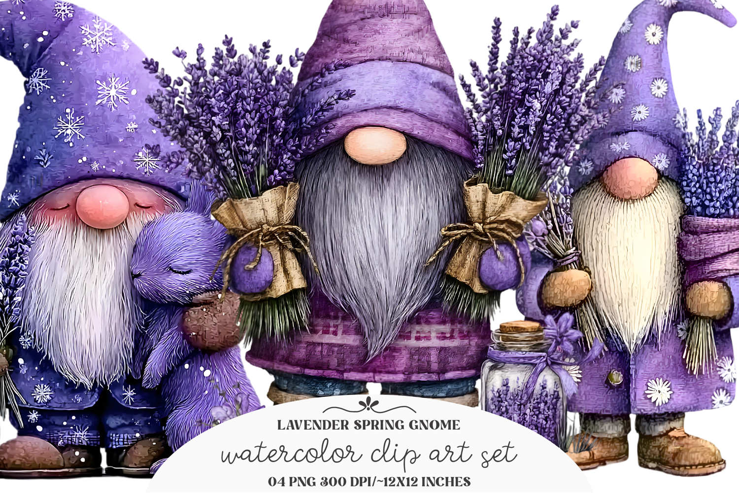 Whimsical Lavender Spring Gnome Clipart