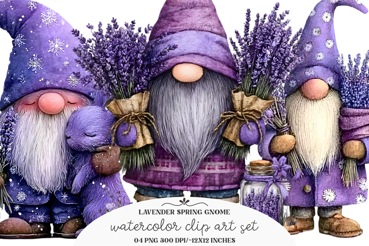 Whimsical Lavender Spring Gnome Clipart example image 1