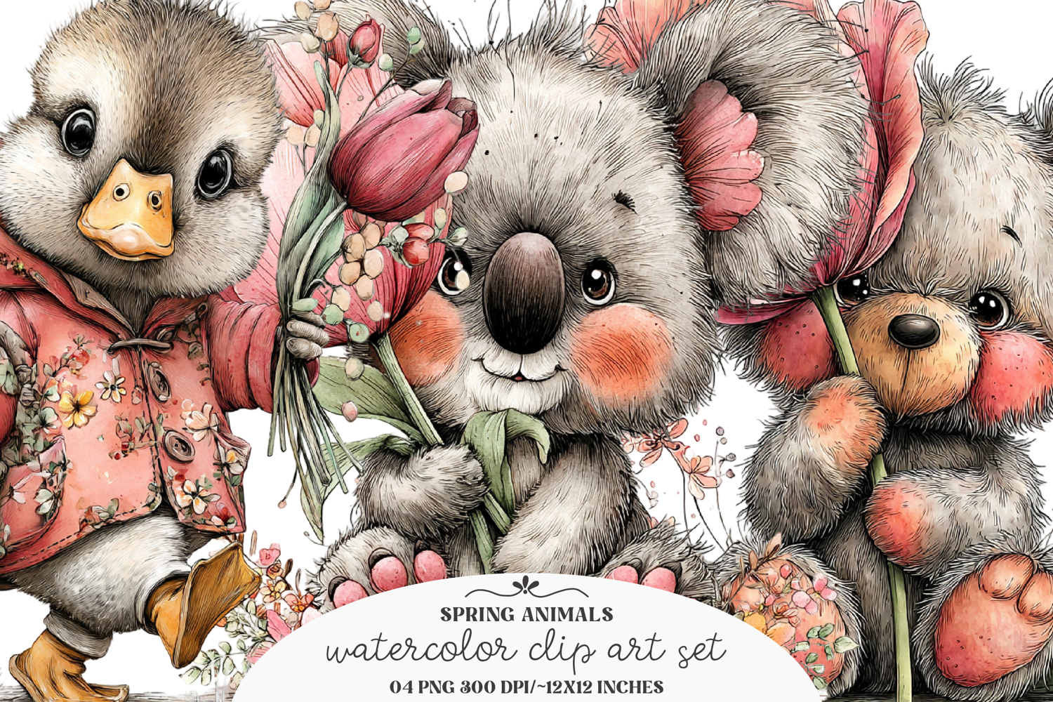 Watercolor Spring Animals
