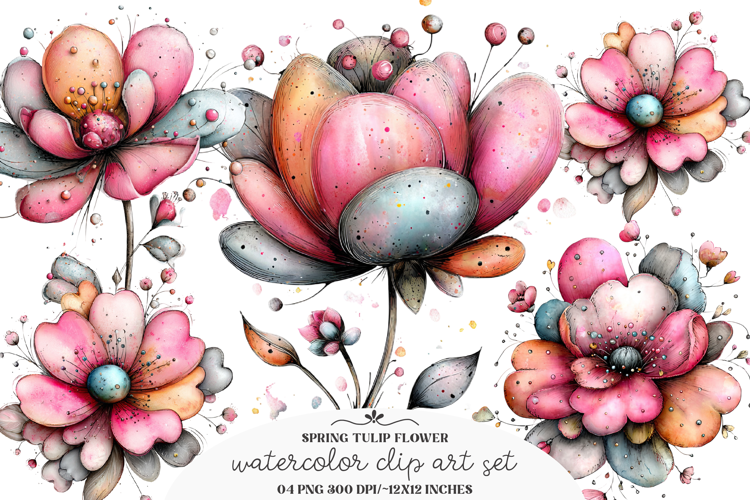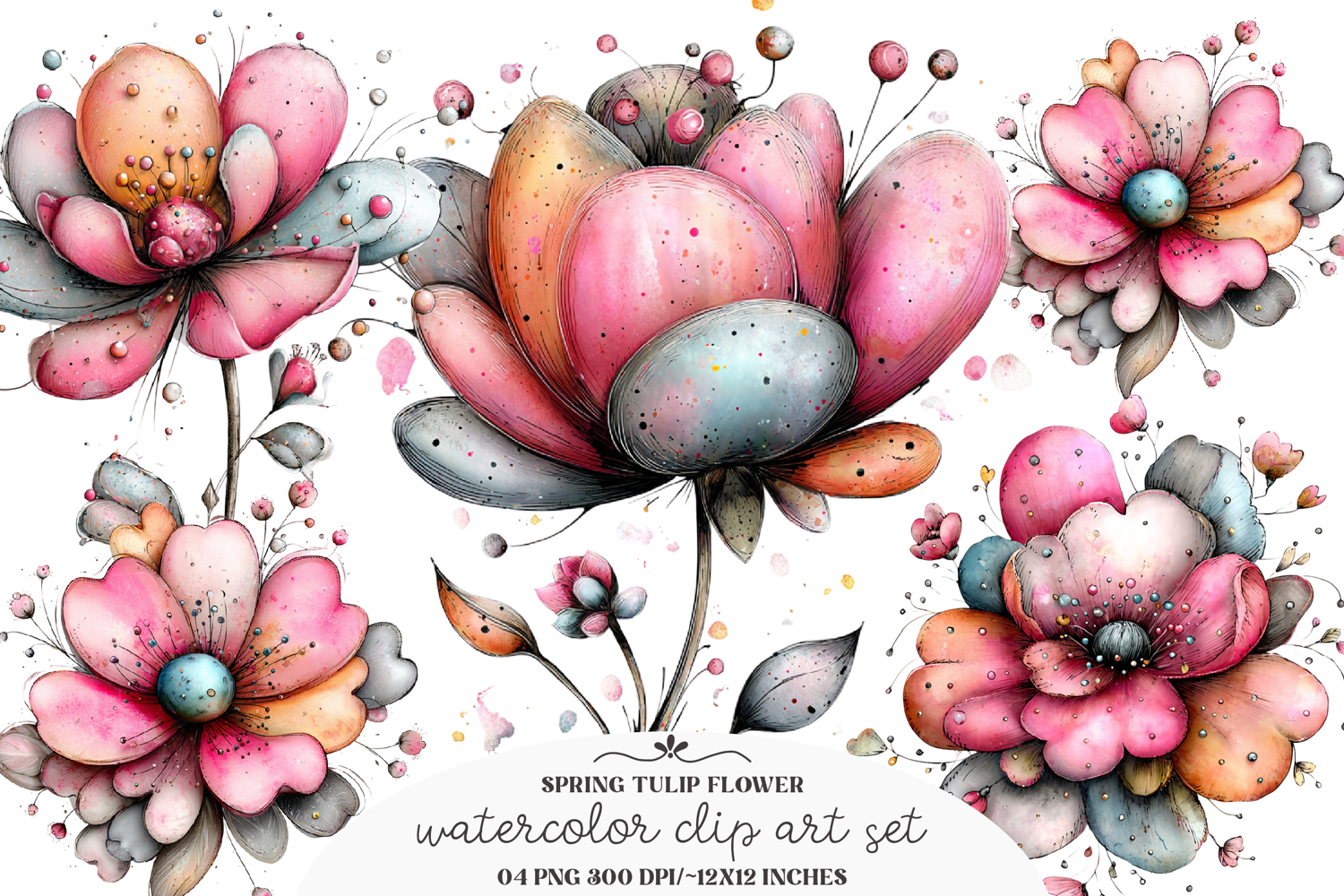 Whimsical spring tulip flower clipart - Spring tulip flowers example image 1
