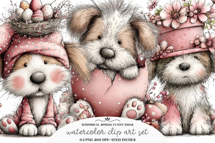 Similar Design Products to Whimsical Spring Funny Dog Clipart