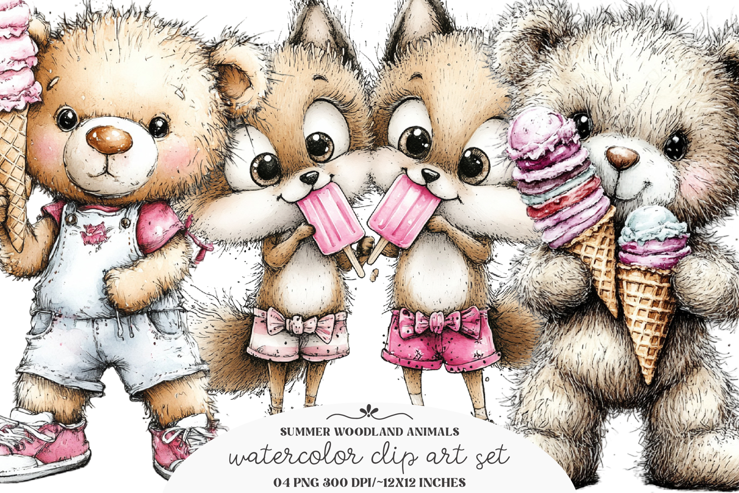 Whimsical summer woodland animals clipart - Summer animals example image 1