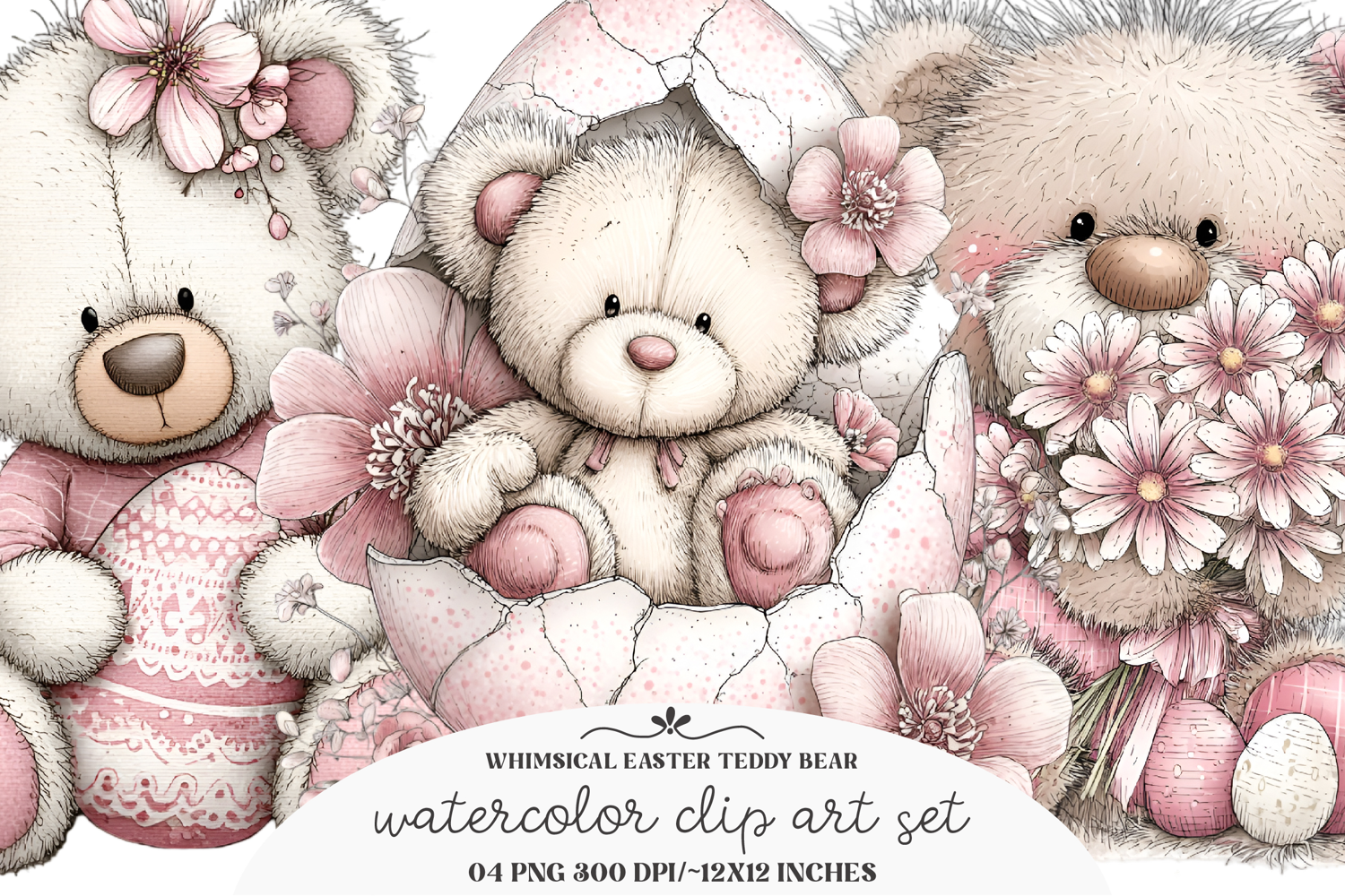 Whimsical Easter Teddy Bear Clipart example image 1