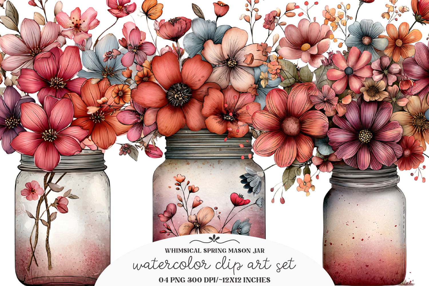 Spring Whimsical Floral Flowers Garden Botanical Bouquet Jar Wildflowers Masonjar