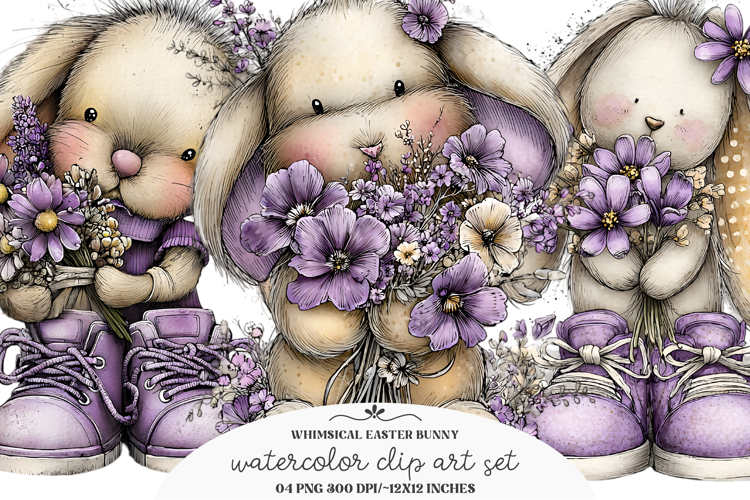 Whimsical Easter Bunny Clipart/ spring clipart example image 1