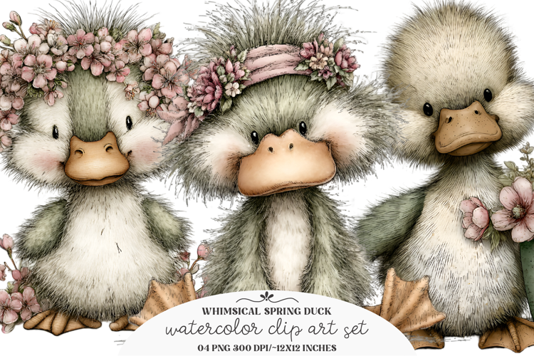 Cartoon Spring Whimsical Cute Bird Pastel Duck Duckling Kawaii Adorable