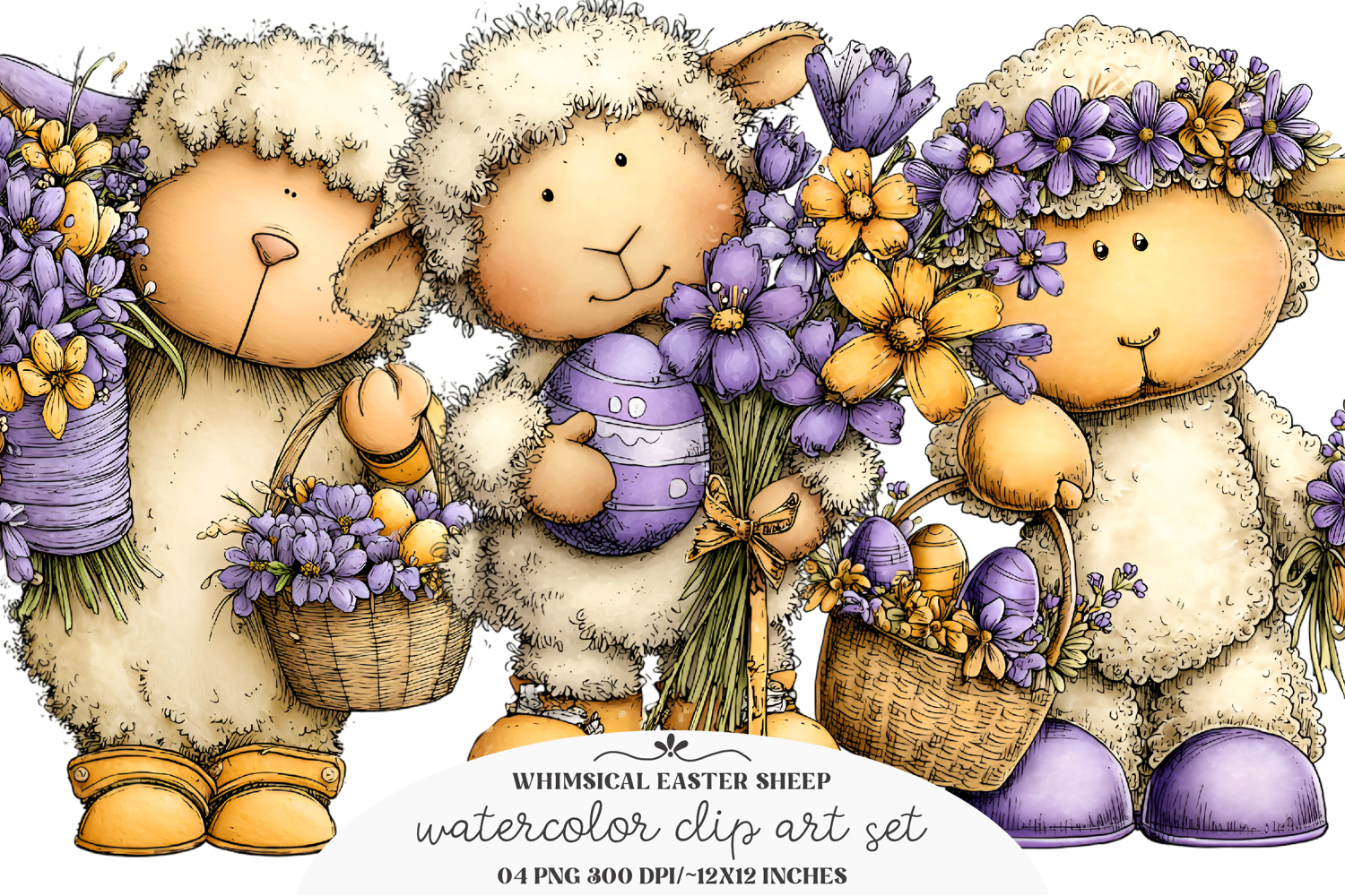 Similar Design Products to Whimsical Easter Sheep Clipart