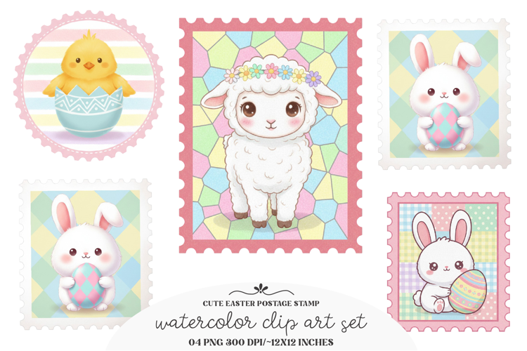 Cute Easter Postage Stamp Clipart PNG example image 1