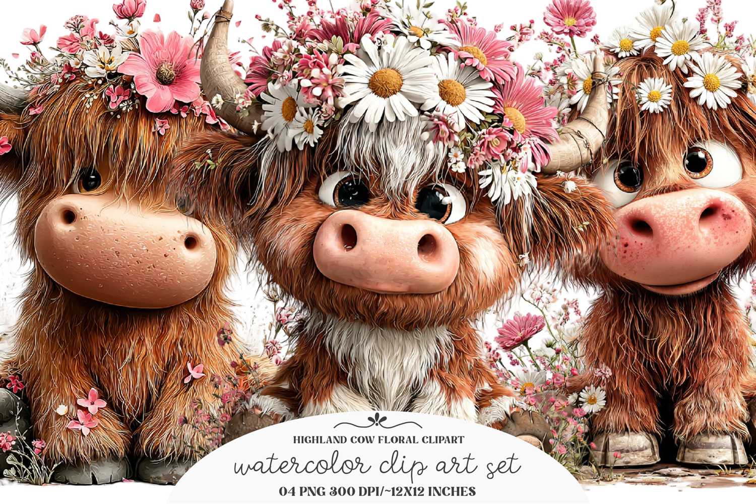 Nature Floral Flowers Garden Bouquet Cow Calf Meadow Highlandcow Flowercrown