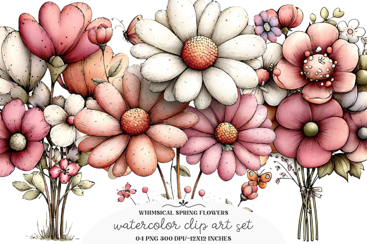 Whimsical Flowers Spring Clipart