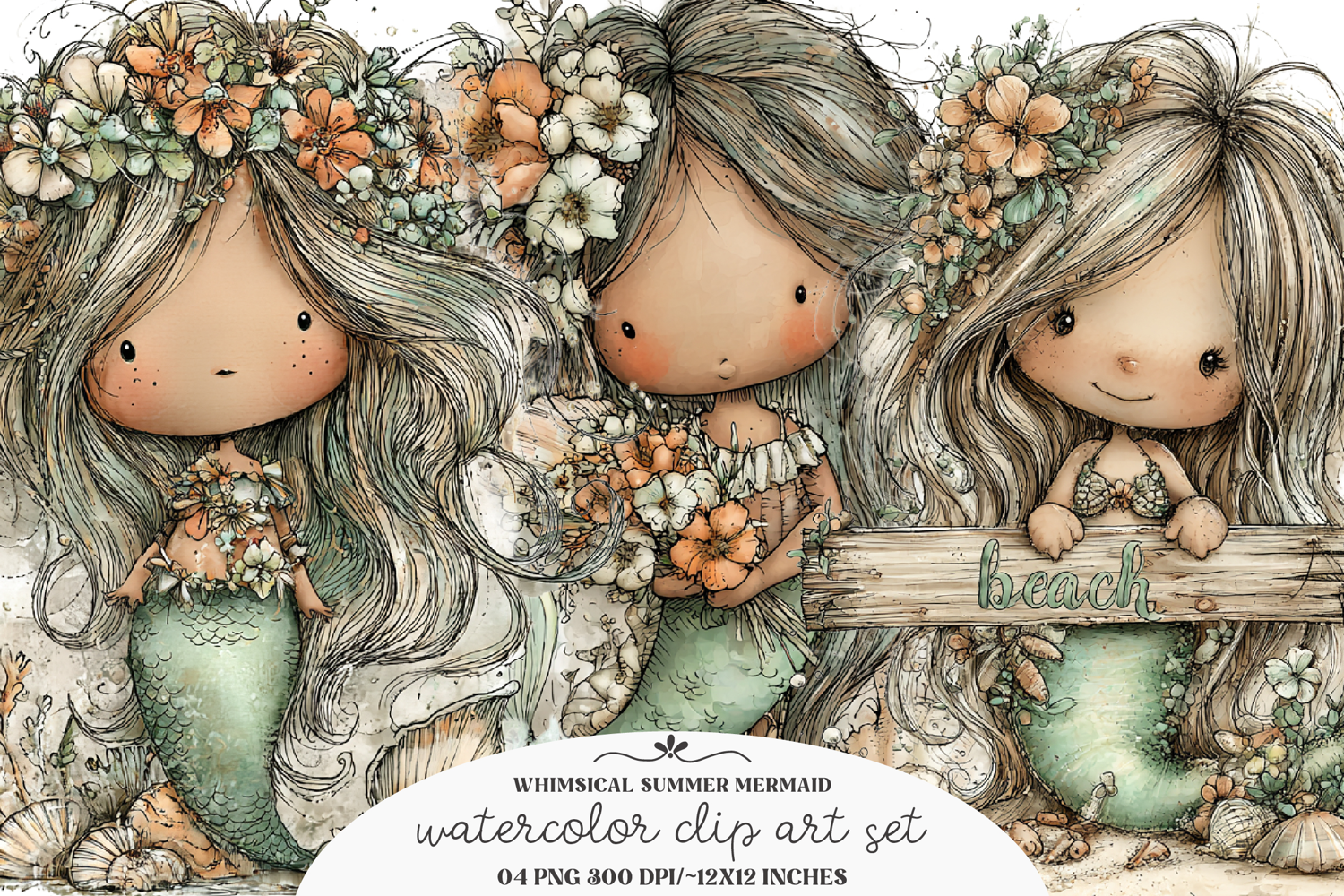 Whimsical summer mermaid clipart - summer mermaid Png example image 1