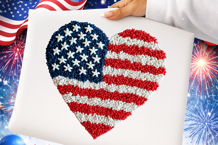 Patriotic Heart , Faux Yarn 4th of July , Latch Hook America