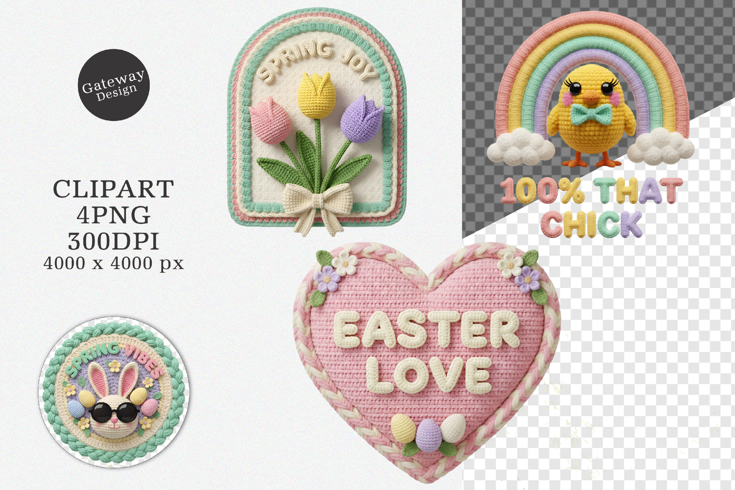 Handmade Texture Soft Easter Clipart Crochet Knitted Cozy Yarn Faux