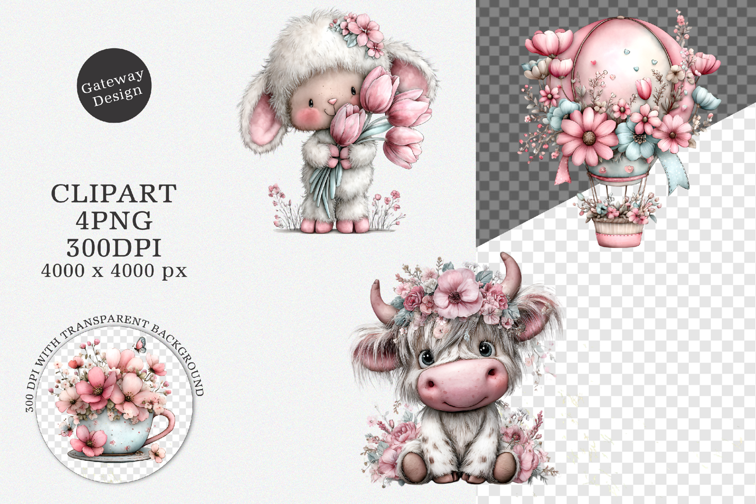4 PNG files resolution 300 dpi with transparent background