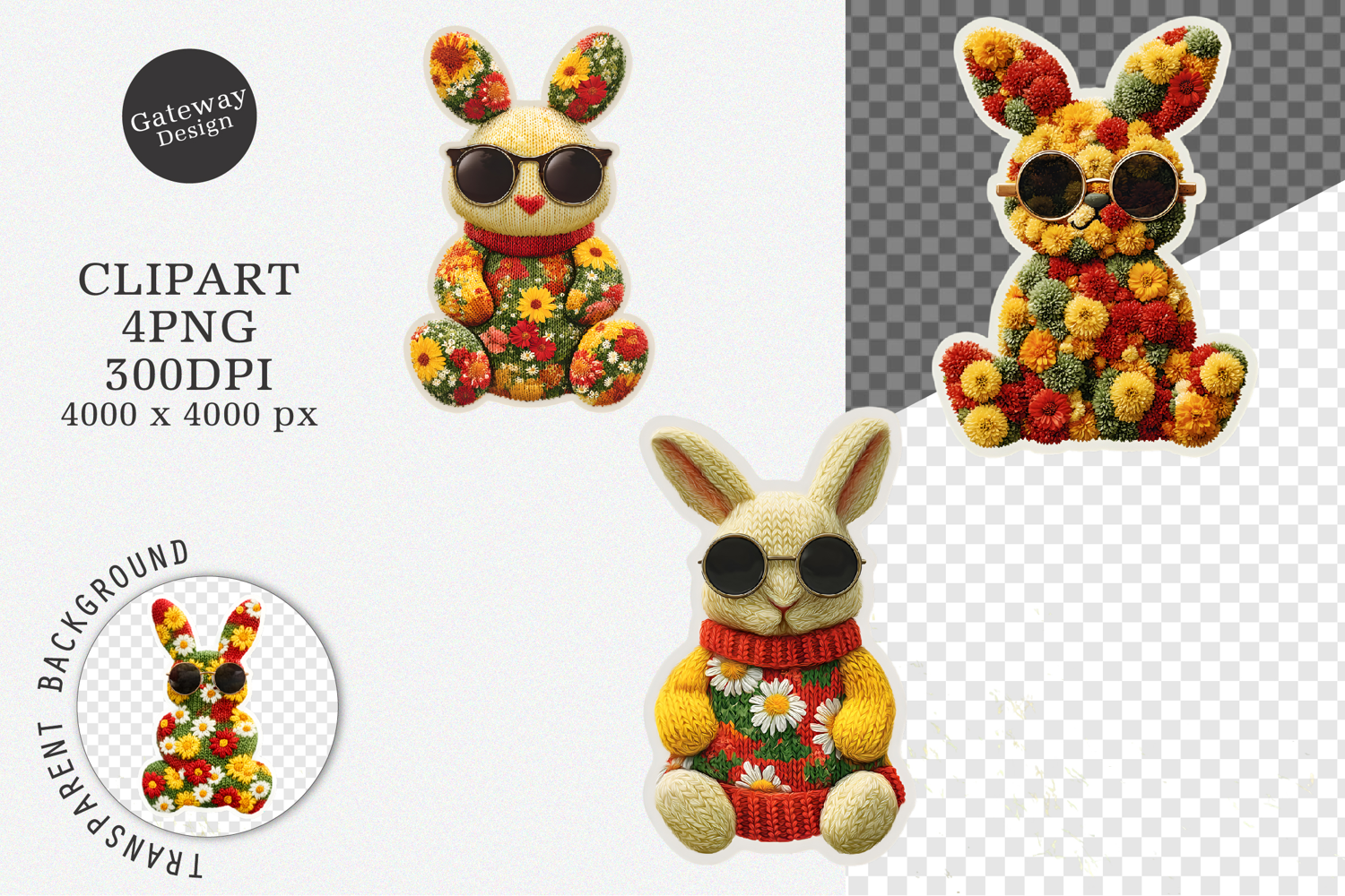 4 Easter Stickers Knitted Easter Floral Bunny Stickers