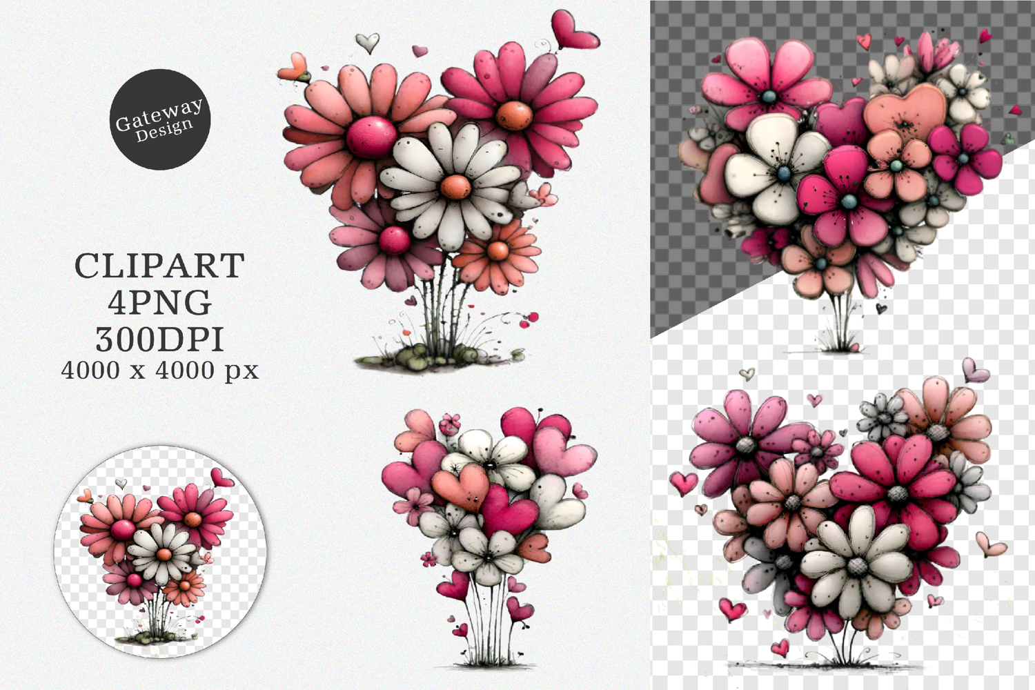 Similar Design Products to Whimsical Spring Heart Flowers Clipart