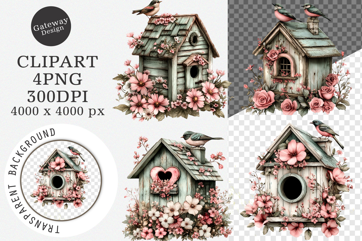 Spring Playful Whimsical Cute Nature Floral Garden Clipart Adorable Birdhouse