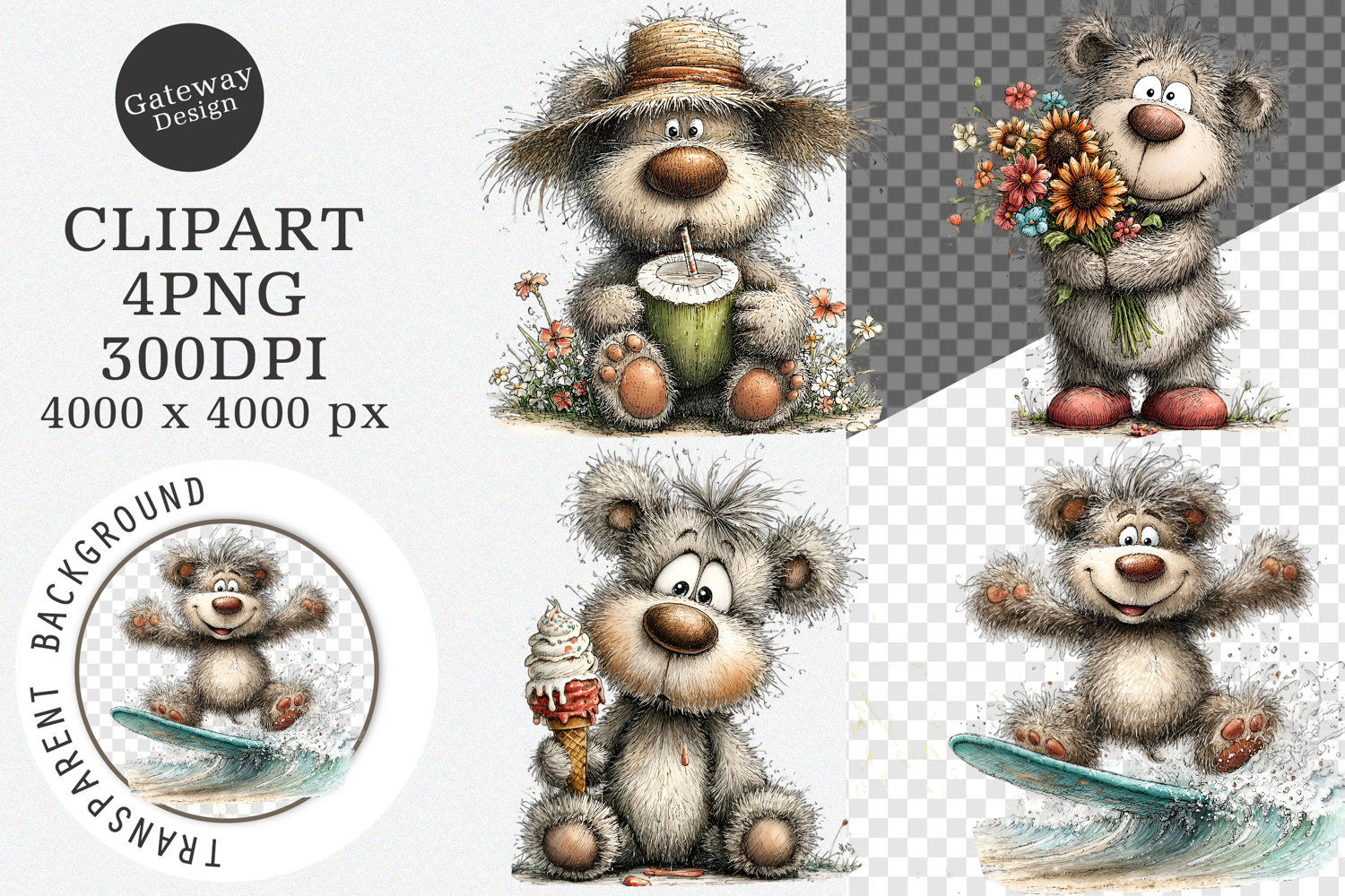 Whimsical summer teddy bear clipart - summer teddy bear Png example image 1