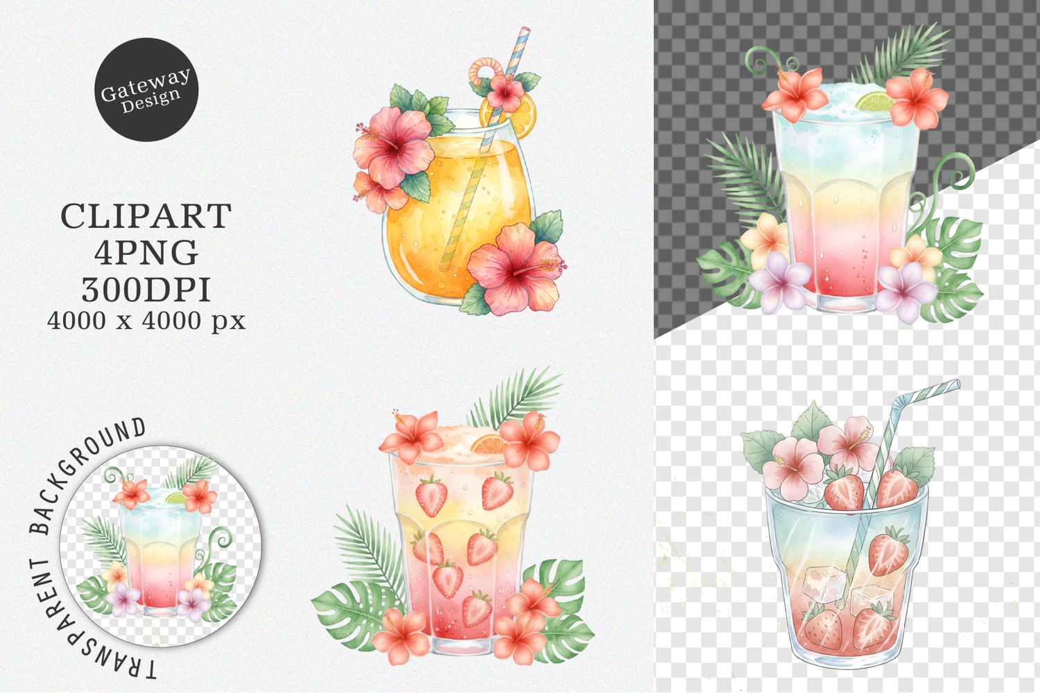 Whimsical Summer Tropical Drink clipart example image 1