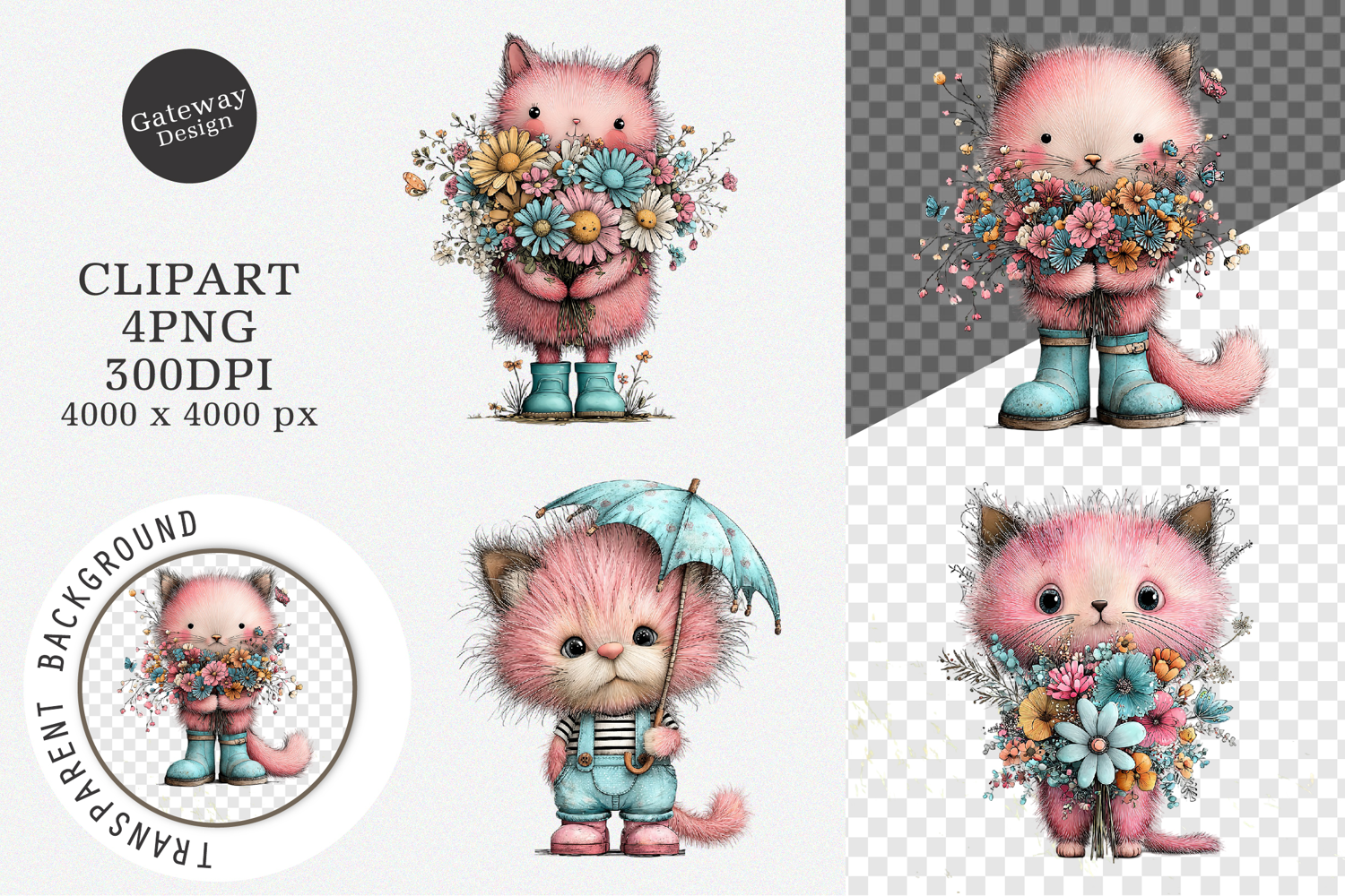 Whimsical Summer Cats Clipart