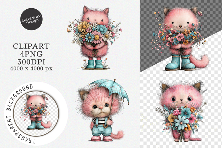Similar Design Products to Whimsical Summer Cats Clipart