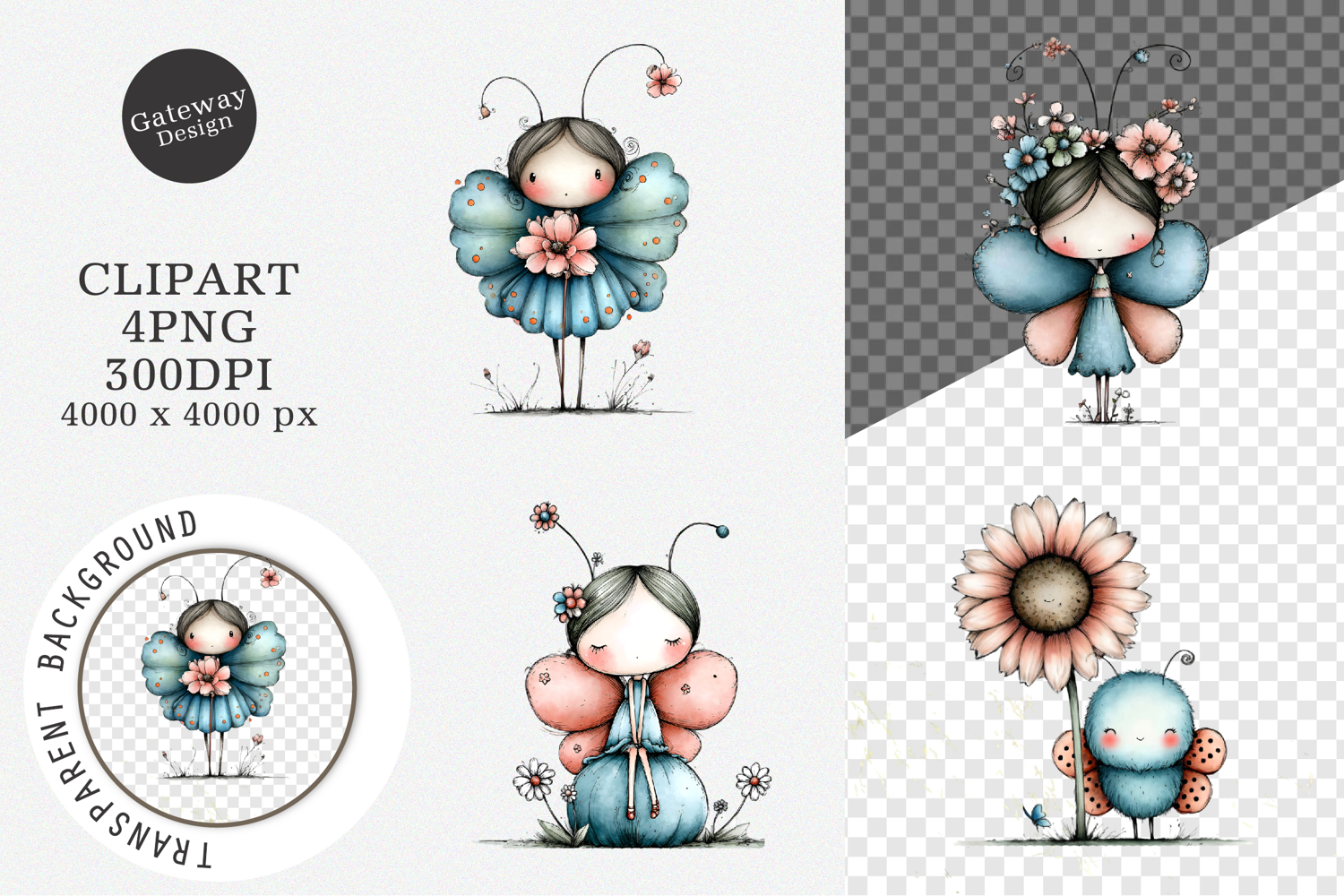 Similar Design Products to Whimsical Butterfly Flower Clipart