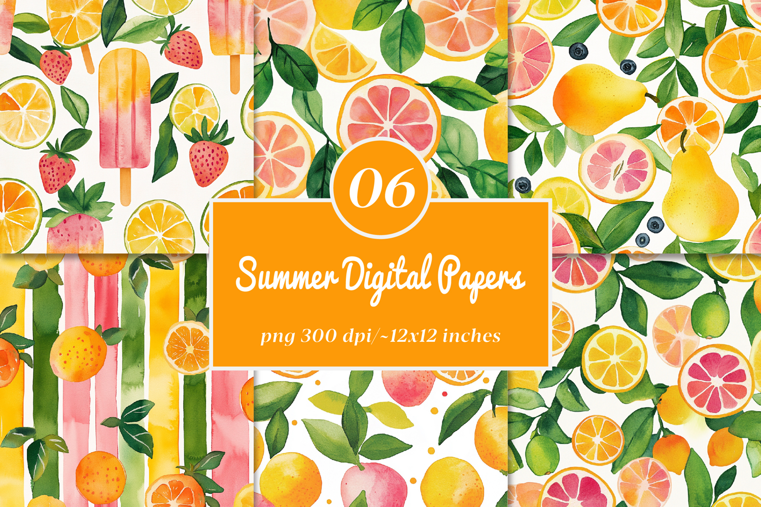 Mixed Fruits Summer Digital Papers