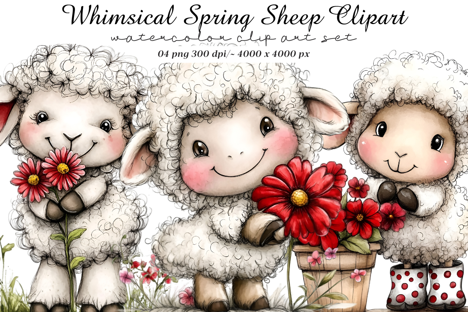 Whimsical Spring Sheep Clipart