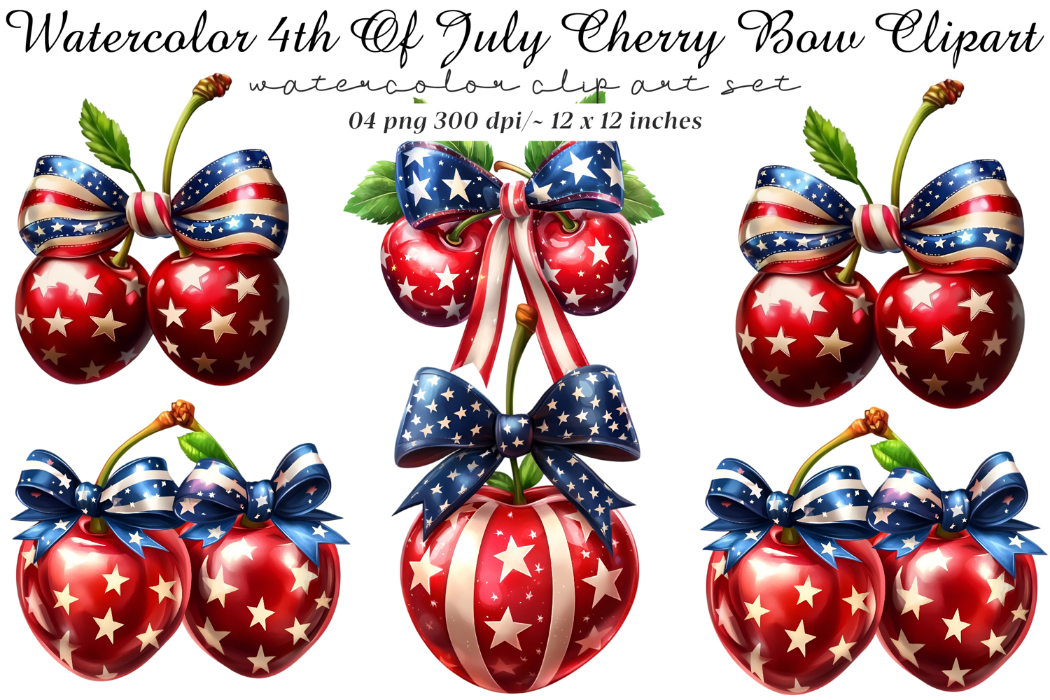 4th Of July Cherry Bow Clipart example image 1