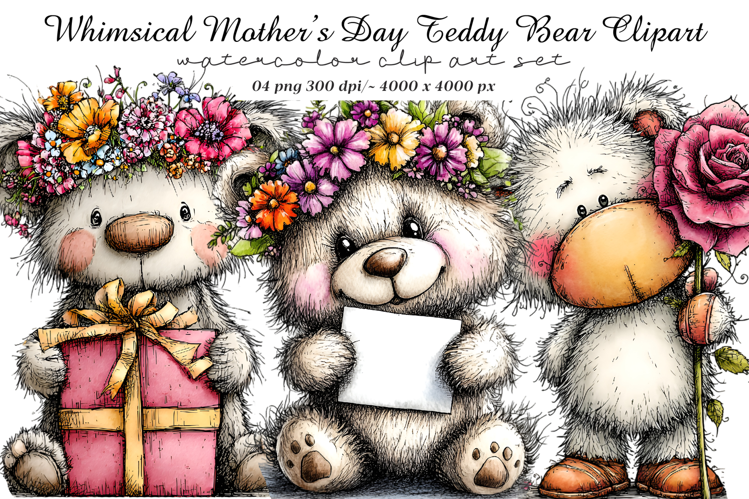 Whimsical Mother’s Day Teddy Bear Clipart example image 1