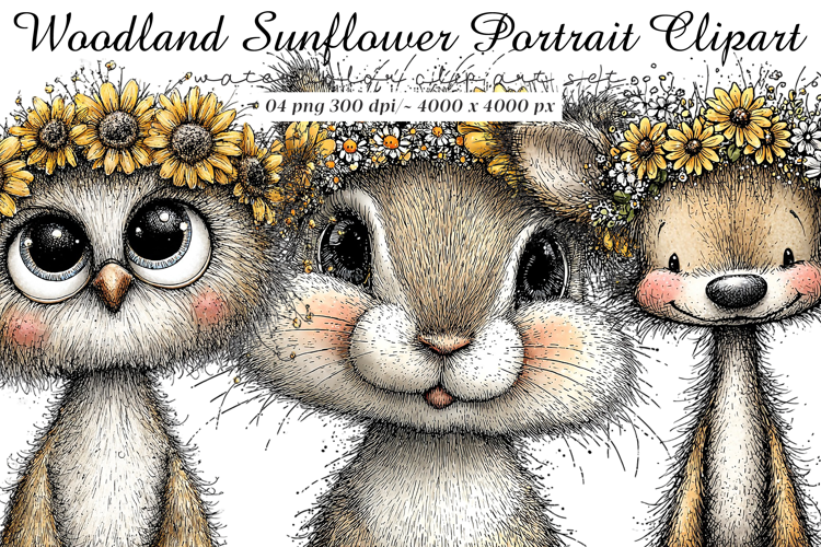 Woodland Sunflower Animals Clipart