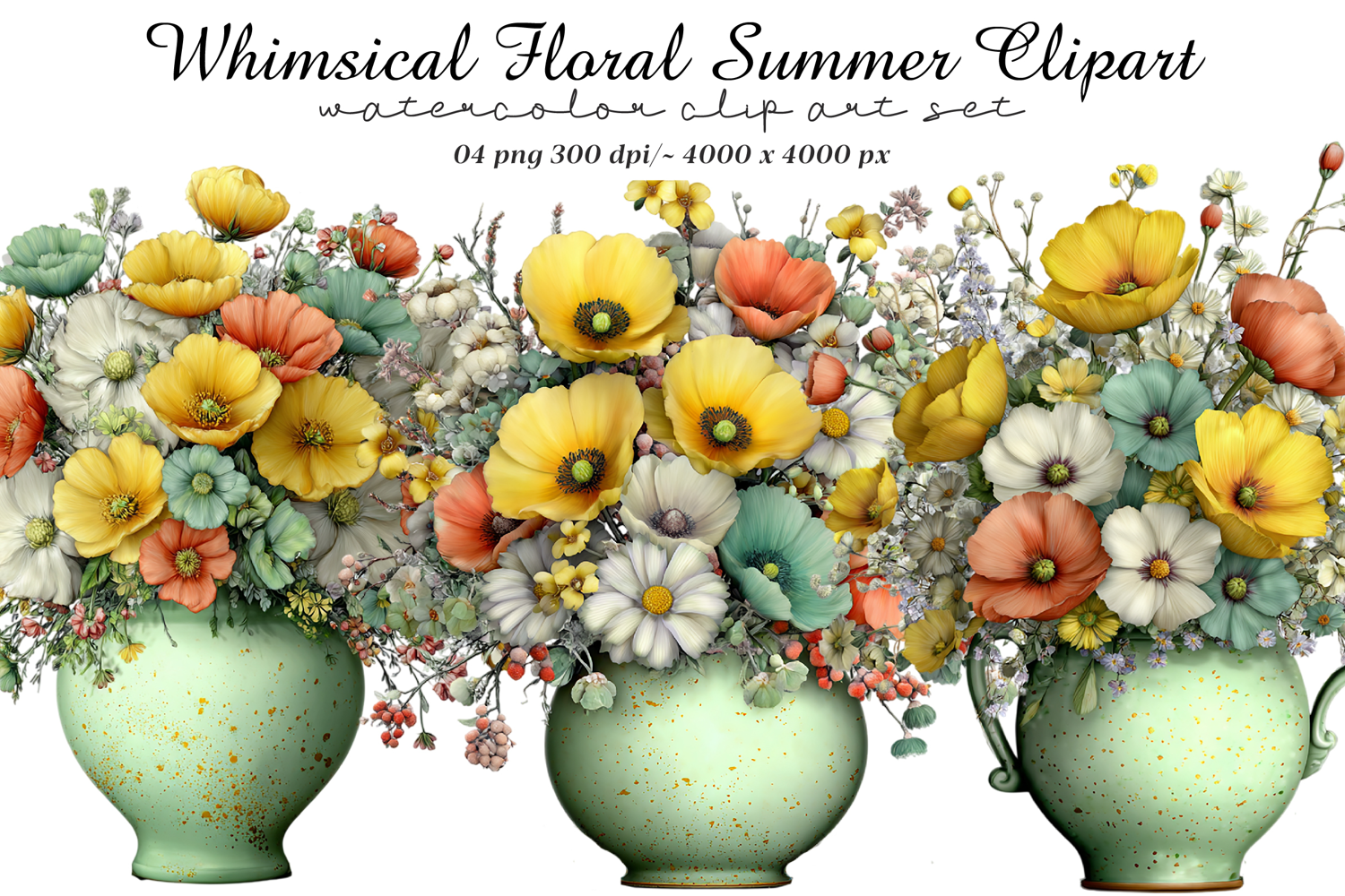 Flower Clipart Watercolor Flowers Floral Clipart Summer Flowers Floral Png Pastel Florals Tropical Florals Whimsical Flowers Summer Floral Clipart Whimsical Summer Floral