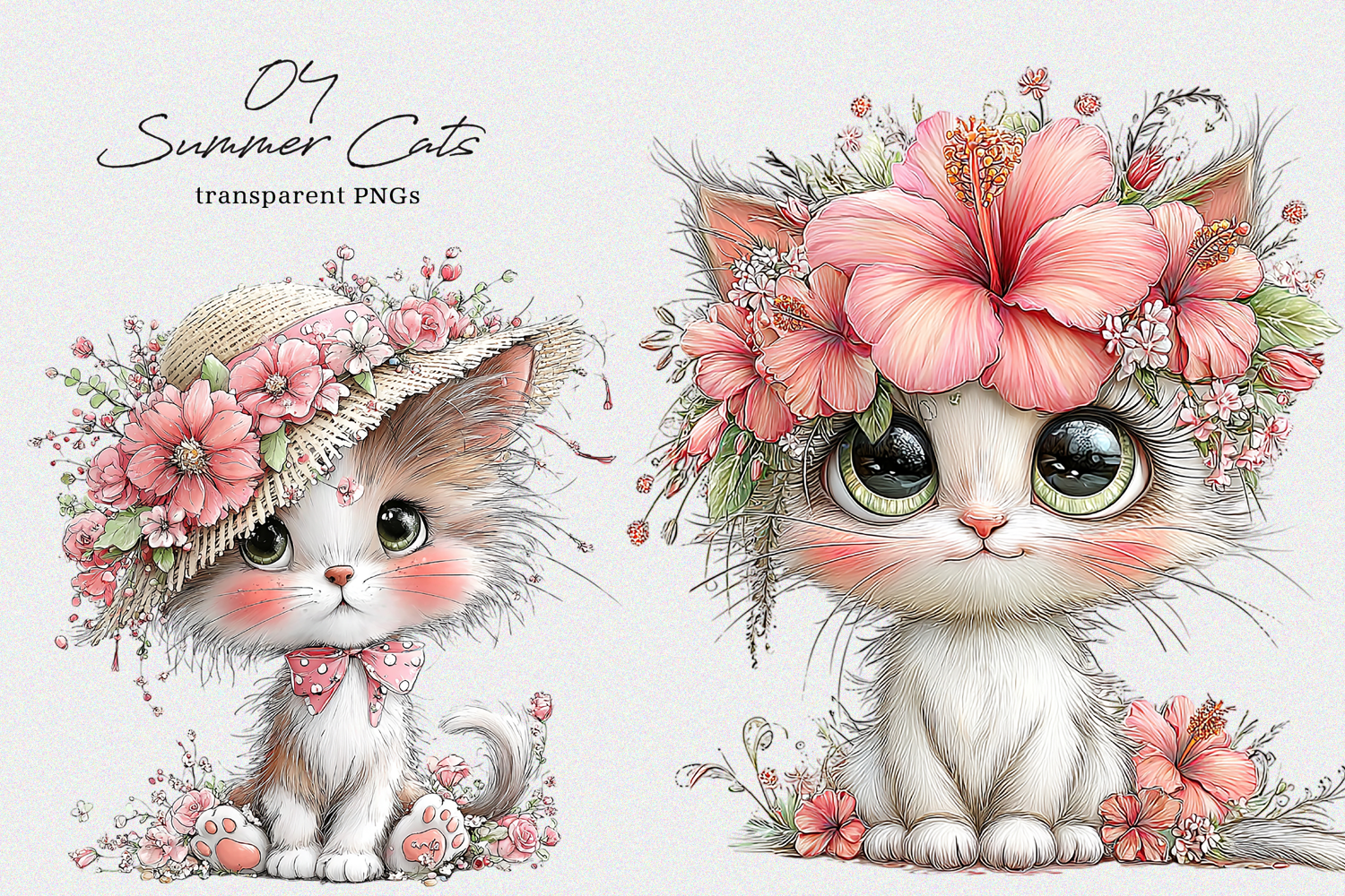 Whimsical Summer Cat Clipart example image 1