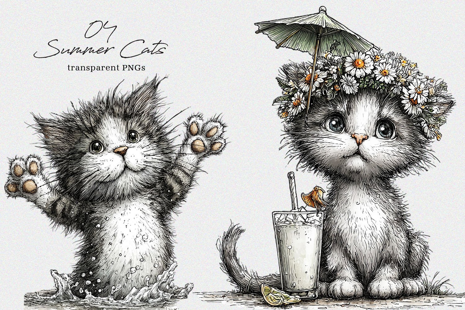 Whimsical Summer Cats Clipart