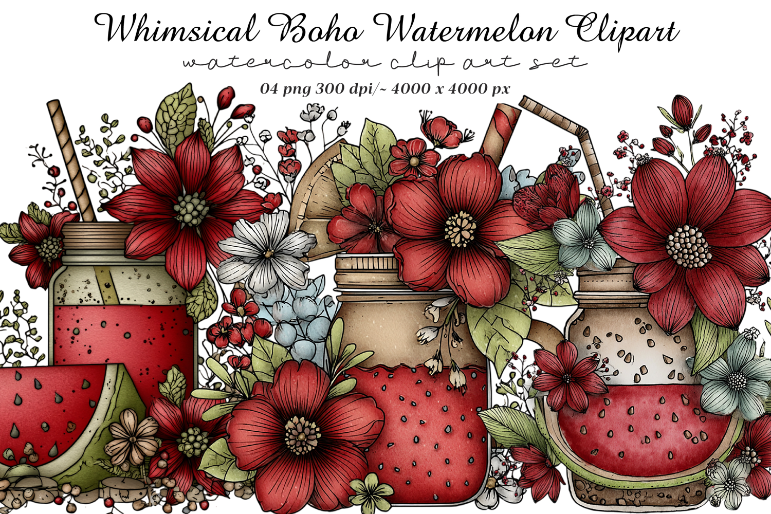 Whimsical Boho Watermelon Clipart